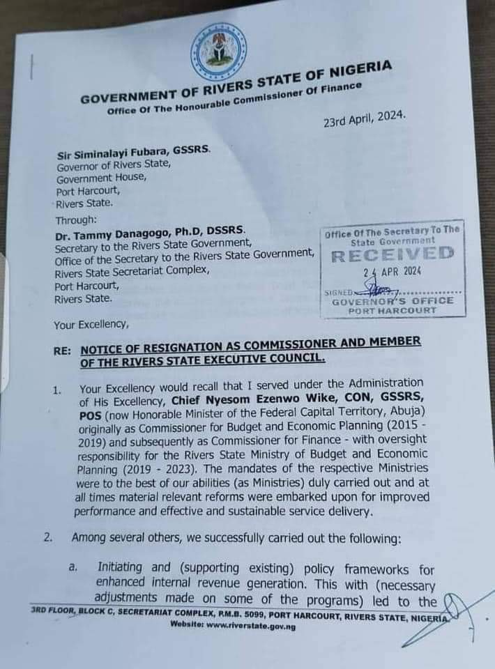Both commissioners, who are loyalists of ex-governor Nyesom Wike, had previously resigned from their positions last December in the heat of the political crisis in the state and the rift between Fubara and his predecessor who is now the Minister of the Federal Capital Territory (FCT). However, they were reinstated as part of the peace agreement initiated by the President Bola Tinubu.