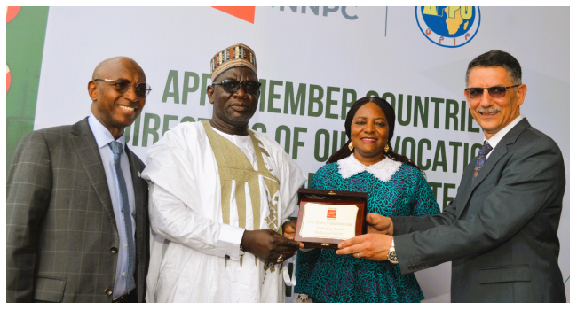 L-R: Secretary General, African Petroleum Producers Organization (APPO), Dr. Omar Farouk Ibrahim; Executive Vice President, Business Services NNPC Ltd (Representative of the GCEO NNPC), Mr. Inuwa Danladi; new Chairperson, Forum of the Directors of Oil & Gas Training & Vocational Education Institutes of APPO and Director NNPC Academy, Mrs. Folashade Adekeye and Managing Director, Algerian Petroleum Institute (API), Mr. Abdelkader Guenone, during the second meeting of the Forum, in Abuja, at the weekend.